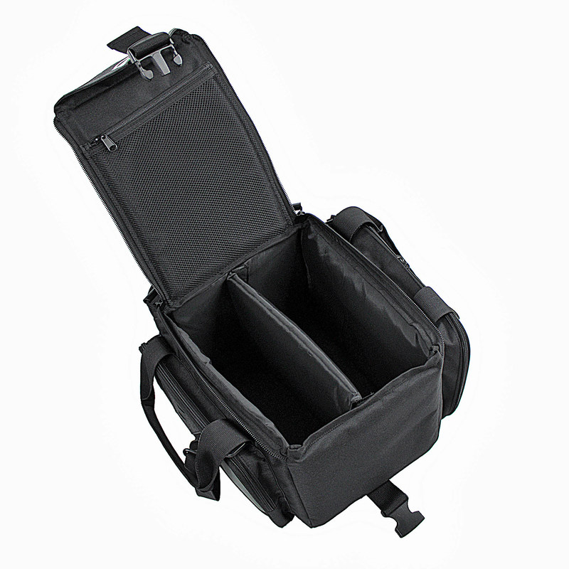 Le diviseur intérieur semi-rigide intégral est attaché avec le tissu de crochet et de boucle laissant l'utilisateur configurer l'intérieur aux besoins spécifiques de stockage